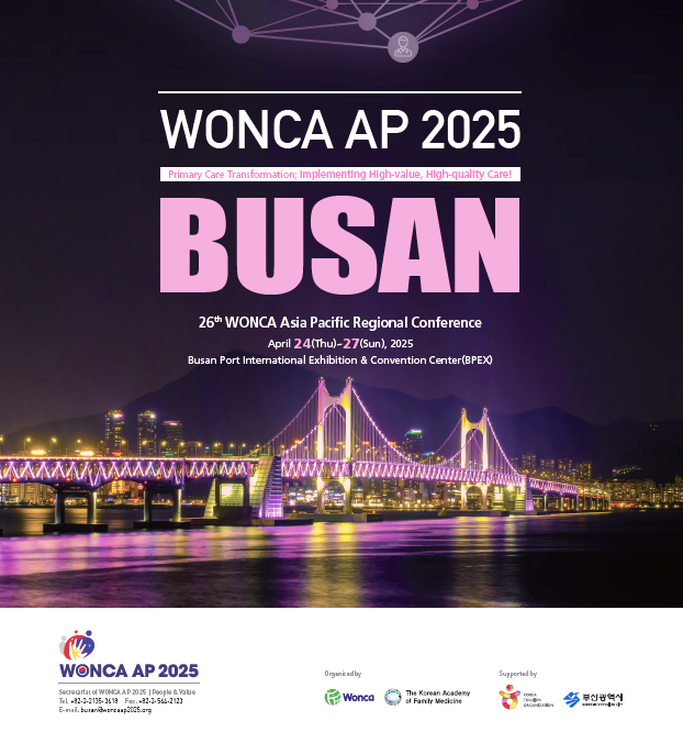 Wonca APRC is set to take place in April 24 (Thu) - 27 (Sun), 2025 at BPEX (Busan Port International Exhibition & Convention Center), Busan,Korea, will be organizing by The Korean Academy of Family Medicine with theme : Primary Care Transformation; Implementing High-value, High-quality Care, bringing together healthcare professionals, researchers, and policymakers from across the region. WONCA, which stands for the World Organization of Family Doctors, aims to improve the quality of healthcare in primary care settings internationally. This conference serves as a vital platform for sharing insights, advancements, and challenges faced by family doctors throughout the Asia Pacific region.